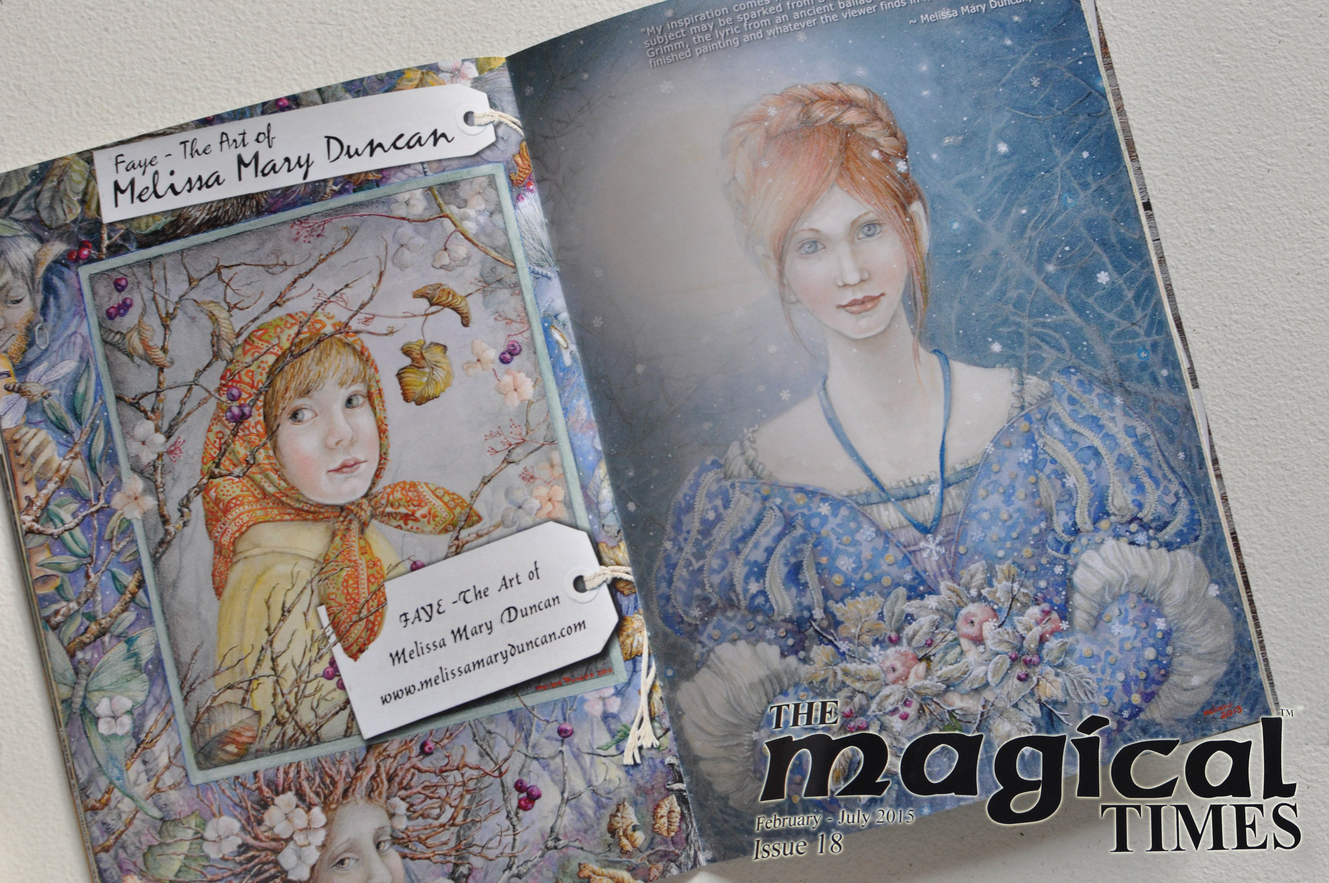 Melissa’s work was showcased this year in, “The Magical Times, ” Magazine Issue 18 February-July 2015as well as on magazine covers and licensed products like needlework designs from the company Heaven and Earth, as well as in private collections in Great Britain , Japan, the US and Canada.