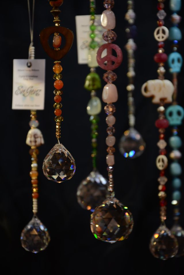 All of their signature Crystal EnGenz (similar to a suncatchers) are made with crystals and semi-precious stones. There are no two alike and each intuitively crafted piece comes with information about the stones used in the creation.